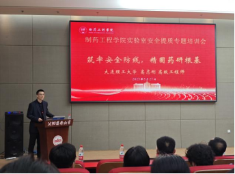 5月27日下午,jdb电子中国官方网站在南校区图书馆国为报告厅举办“筑牢安全防线,精固药研根基”——实验室安全提质专题培训会,邀请大连理工大学化工学院专家高志刚就实验室安全管理作专题培训。校资产与实验室安全管理处处长刘玉成、学院领导班子成员、教研室主任、实验中心主任、研究生导师、实验室安全负责人及实验室安全员参加本次培训,会议由jdb电子中国官方网站副院长秦铭泽主持。