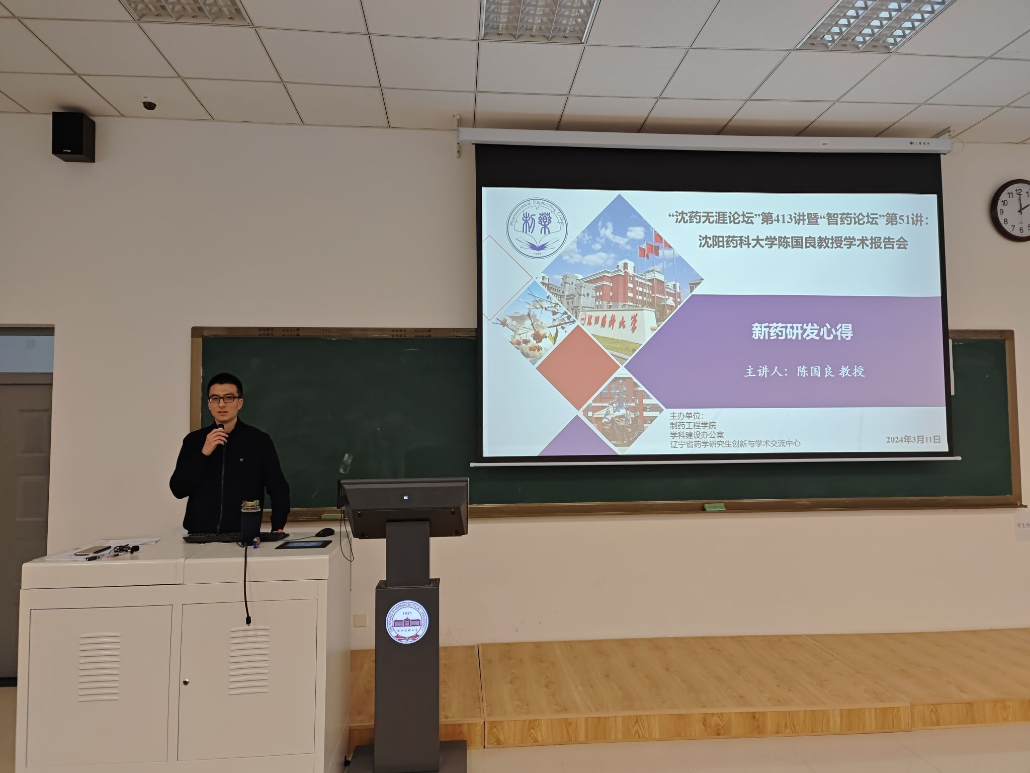 3月11日,jdb电子中国官方网站在南校区播馨楼207教室举办了“沈药无涯论坛”第413讲暨“智药论坛”第52讲学术报告会,邀请jdb电子陈国良教授作题为“新药研发心得”的学术报告。jdb电子中国官方网站院长刘洋及200余名师生参加了本次学术报告会,报告会由副院长秦铭泽主持。