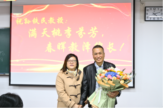 学院党委书记李哲代表jdb电子中国官方网站向孙铁民教授送上鲜花和祝福,感谢孙教授教学科研工作中对学院发展做出的贡献,希望年轻教师以孙教授为榜样,共同为学院的发展不断努力。
