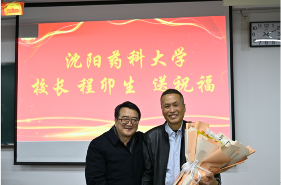 校长程卯生教授首先代表同门学子向师兄孙铁民教授送上鲜花和祝福,感谢孙教授为学校的发展以及祖国药学事业做出的卓越贡献。