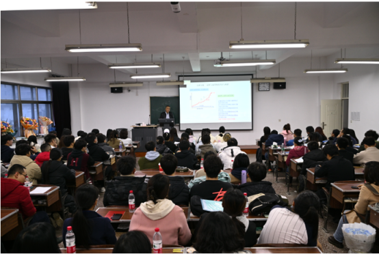 在课堂上,新增了许多特殊的“同学”——校长、研究生院院长、无涯书院院长、jdb电子中国官方网站领导班子成员、药物化学教研室的同事们,还有学院青年教师、毕业学生代表、在读研究生等等近50人济济一堂,与全体同学共同聆听了孙老师最精彩的一课。