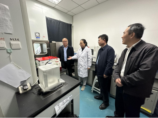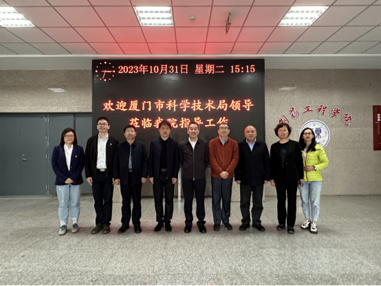 10月31日,福建省人民政府参事、致公党厦门市委一级巡视员徐平东,厦门市科学技术局党组成员、副局长曹伟民,厦门翔安创新实验室成果转化办主任谢靖凡,厦门市科学技术局招商办专员吴晓银一行4人来到jdb电子,就推动双方开展新药协同创新进行调研。学院院长刘洋、副院长赵燕芳、副院长郭永学、药物化学系主任刘丹、化学实验中心主任郭春参加调研。