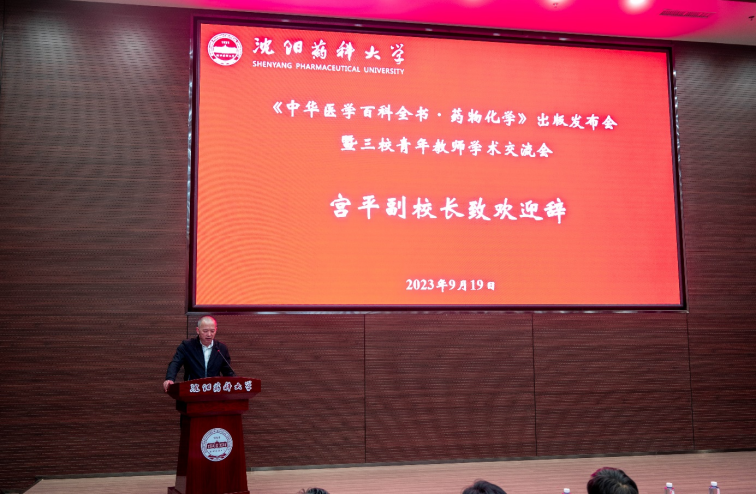 我校副校长宫平出席会议并致辞。他表示,《中华医学百科全书·药物化学》的发布是我国规范医学基本概念、传播精准医学知识、促进医学发展和人类健康的重要成果,标志着我国药物化学知识科普工作迈上新台阶。他鼓励参与此书编写的青年教师要勇挑大梁、敢担重任,期待青年教师积极作为、快速成长。
