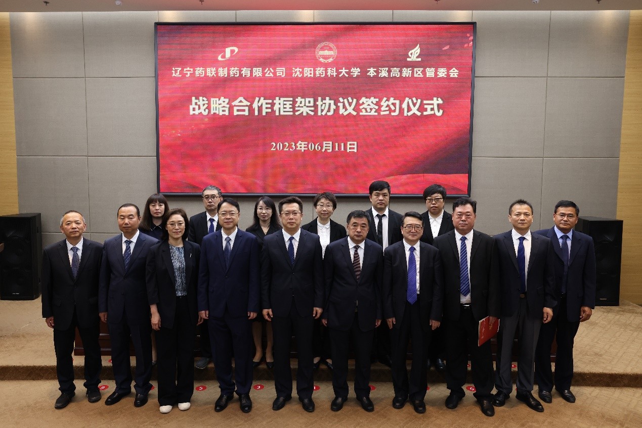 我校与本溪高新区管委会和辽宁药联制药有限公司三方共同签署战略合作框架协议。