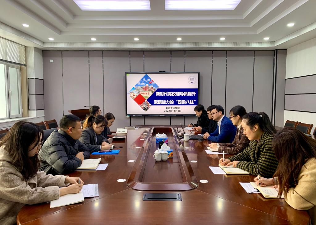 会上,葛骁欧和与会同志共同学习了党的二十大报告中关于教育的重要论述,分享了学习体会。他以全国高校辅导员素质能力大赛为切入点,重点阐述了辅导员的职业能力标准、工作职责以及基本条件,结合多年辅导员工作经验深入交流了辅导员素质能力的“四梁八柱”,“四梁”即四个内核:“四个自信”、“四个意识”、“四有好老师”、“四个引路人”,“八柱”即八种能力:政治宣传能力、文字表达能力、科学研究能力、人际交往能力、管理服务能力、创造生活能力、创新学习能力、总结升华能力。