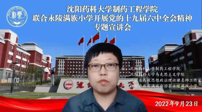 在jdb电子中国官方网站马克思主义学院、辽宁省高校思想政治理论课名师工作室大力支持下,9月23日,jdb电子中国官方网站联合抚顺市新宾满族自治县永陵满族小学召开党的十九届六中全会精神专题宣讲会,邀请辽宁省雷锋研究会常务理事、马克思主义学院副教授郭赞进行专题辅导。永陵满族小学校长黄志勇及教师党员,jdb电子中国官方网站党委书记李哲、党委副书记刘阳及马克思主义学院相关教师参加会议。