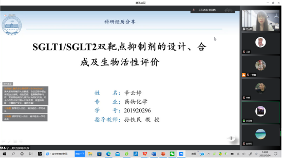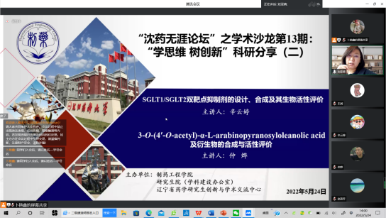 为营造学院研究性科研生态,拓宽师生科研视野,在研究生院(学科建设办公室)及辽宁省药学研究生创新与学术交流中心的支持下,5月24日下午,jdb电子中国官方网站以线上形式举办了“沈药无涯论坛”之学术沙龙第13期“学思维 树创新”科研分享活动(二)。2019级硕士研究生辛云婷和仲烨进行了精彩报告,沙龙由药物化学教研室刘亚婧教授主持,300余人参加了此次学术沙龙。