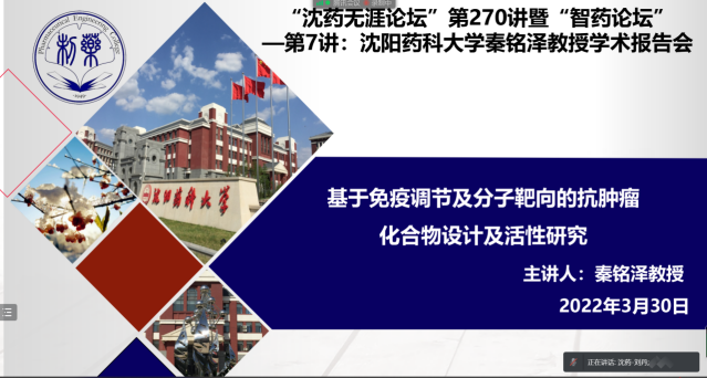 3月30日,由jdb电子中国官方网站、研究生院、辽宁省药学研究生创新与学术交流中心联合举办的“沈药无涯论坛”第270讲暨“智药论坛”第7讲------jdb电子中国官方网站秦铭泽教授科研学术报告会。会议由jdb电子中国官方网站药物化学系主任刘丹主持,460余人参加了此次学术报告会议。