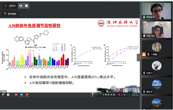 学术报告会上,秦铭泽教授做了题为“基于免疫调节及分子靶向的抗肿瘤化合物设计及活性研究”的报告,通过对作用于VEGFR及干扰PD-1/PD-L1两类抗肿瘤靶向小分子化合物的研究过程,分享了自己科研工作的经历及心得,为与会的师生提供了科研思路。