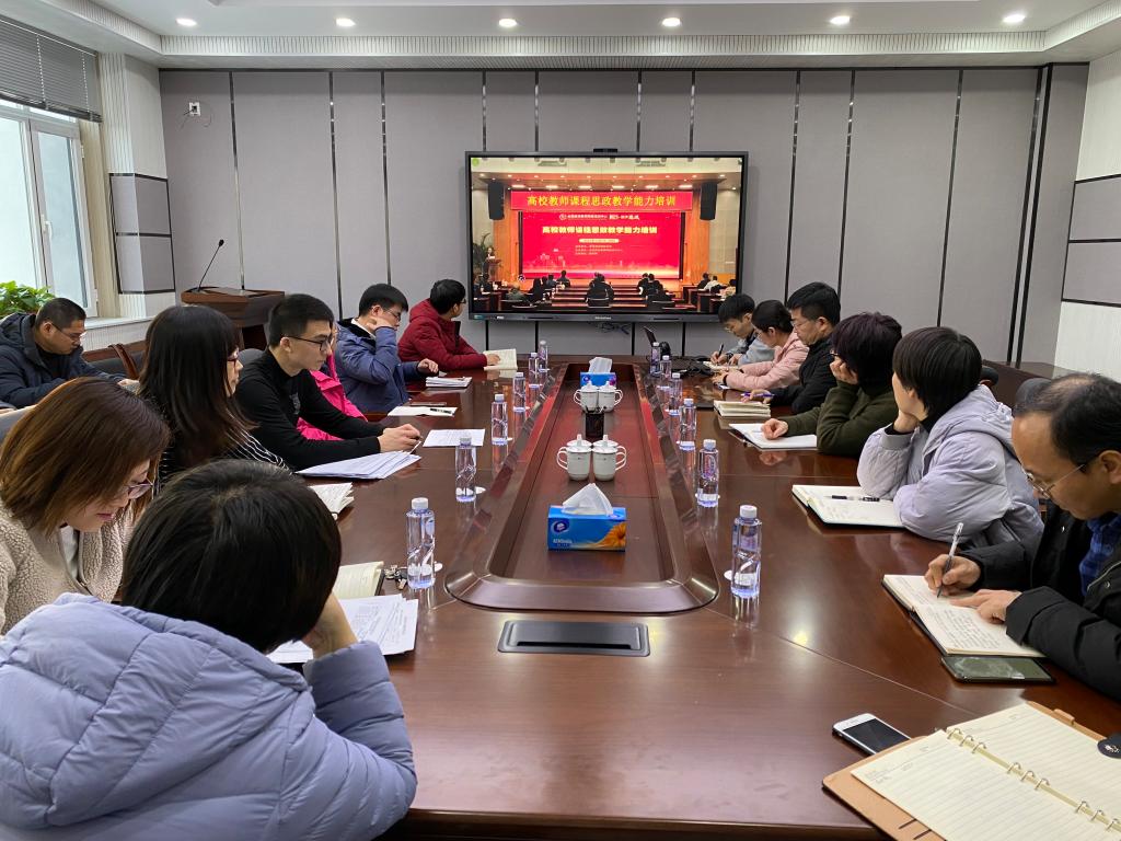 为提升jdb电子教师课程思政建设意识和能力,加强课程思政高质量建设,jdb电子中国官方网站积极组织教师参加由全国高校教师网络培训中心举办的高校教师课程思政教学能力培训会。11月24日下午在学院227会议室,学院班子成员、教研室主任和部分教师代表集中参加了线上课程思政教学能力培训会开班式。赵临襄院长对本次教学能力培训会高度重视,会上对培训课程内容进行了梳理,对采取集中与分散相结合的学习方式做了部署,鼓励教师积极开展课程思政教学研究,会议由郭永学副院长主持。
