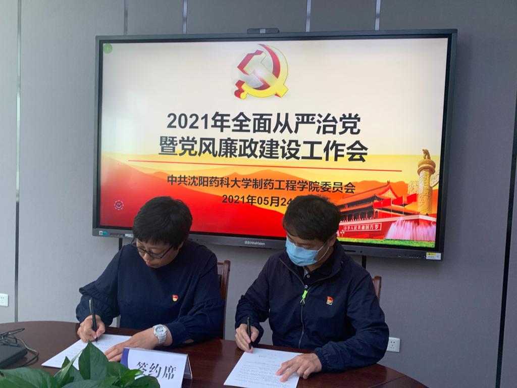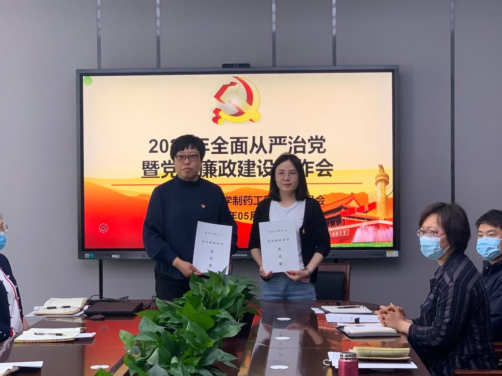 随后,院党委书记李哲代表学院党委与药物化学第二党支部、全国百强样板党支部博士研究生党支部两个基层党支部代表签订了《2021年党风廉政建设责任状》。她在讲话中指出,过去的一年,学院党委在校党委的坚强领导下,坚持党要管党、全面从严治党,以过硬的担当、过硬的措施、过硬的作风,在应对复杂严峻形势中砥砺前行,成效显著。