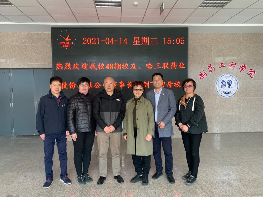 4月14日,我校48期校友、哈尔滨三联药业股份有限公司董事长秦剑飞、研发中心科学委员会秘书长胡玉庆一行访问jdb电子中国官方网站,院长赵临襄、院党委书记李哲、副院长赵燕芳、副院长郭永学、院长助理刘洋热情接待秦总一行并在学院241会议室举行交流座谈。学院研究生辅导员一同参加了座谈。