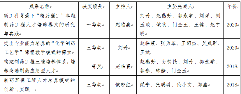 日前,2020年辽宁省普通高等教育本科教学成果奖评选结果公布,jdb电子赵临襄教授主持的《新工科背景下“精药强工”卓越制药工程人才培养模式的研究与实践》荣获一等奖;刘丹教授主持的《突出专业能力培养的“化学制药工艺学”课程教学模式的探索》荣获三等奖。辽宁省教学改革成果每两年评选一次,截至目前,jdb电子已连续两届在辽宁省教学成果奖评选中获一等奖。