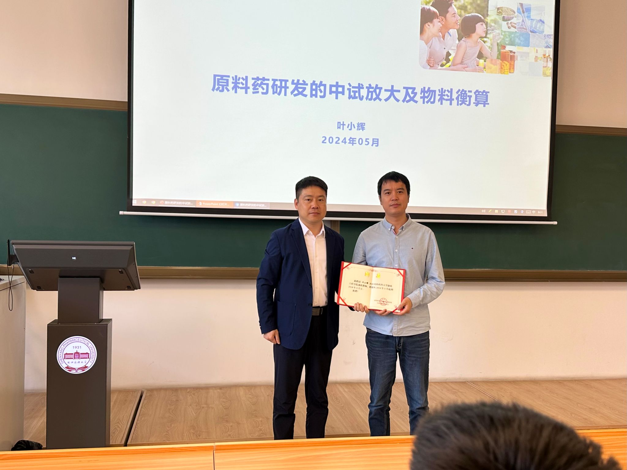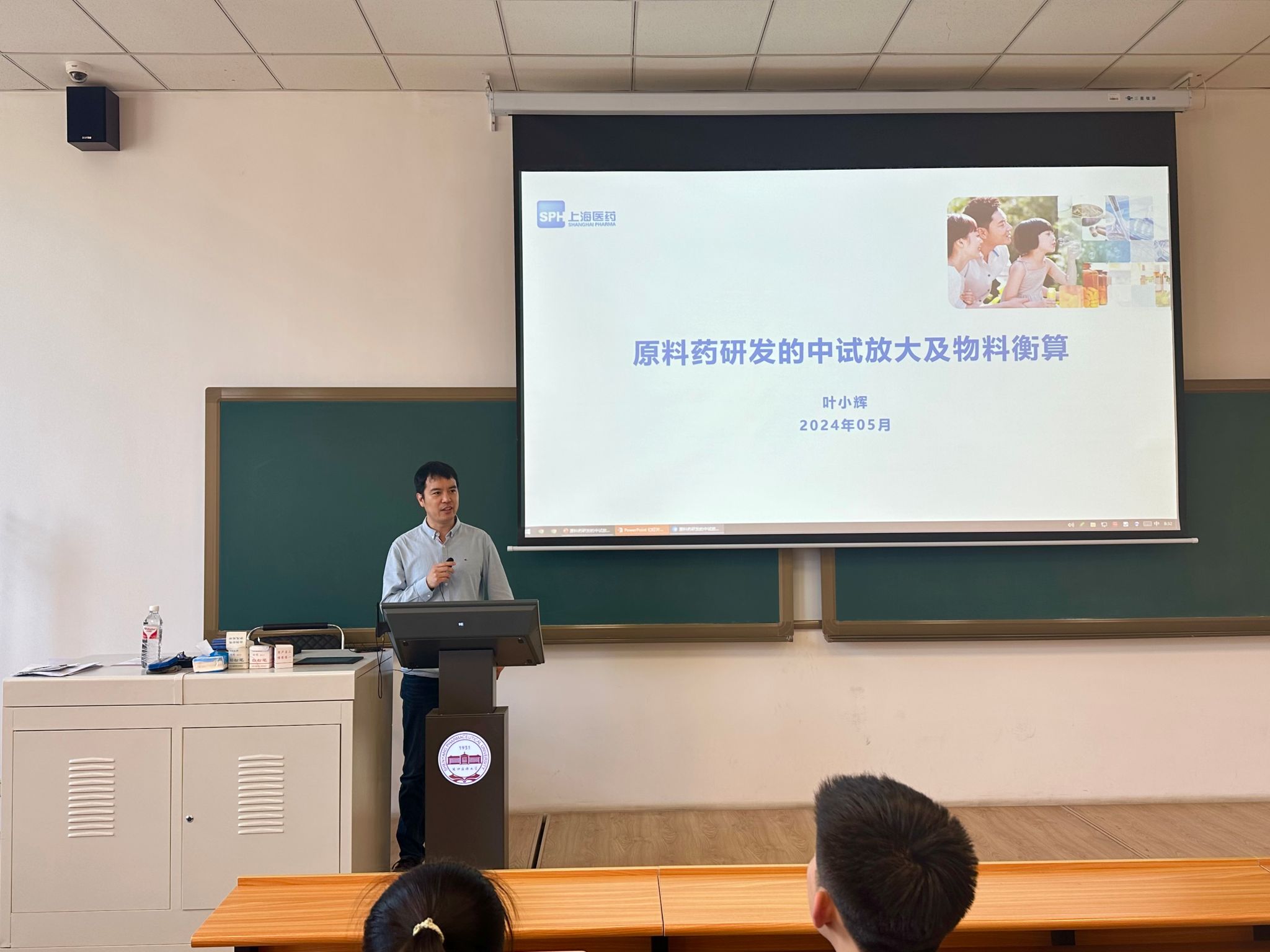 5月28日,jdb电子中国官方网站聘请上海医药集团(本溪)北方药业有限公司高级工程师叶小辉为兼职教师,并给88K制药工程专业的同学们进行《化学制药工艺学》课程授课,学院院长刘洋、副院长刘丹共同聆听了课程。