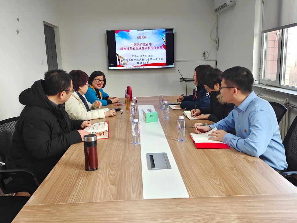 12月22日,jdb电子中国官方网站药物化学第一党支部邀请我校马克思主义学院马克思主义基本原理教研室主任盛春辉副教授为支部党员讲党课,本次党课采取线上与线下结合的方式由党支部书记刘丹教授主持。盛春辉副教授以“中国共产党百年精神谱系的生成逻辑和价值意蕴”为题,为支部党员同志开展了一堂深刻且意义深远的党课。