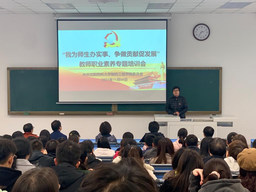 为提升jdb电子中国官方网站教师队伍的综合职业素养,提高教师教书育人水平,让学院师生切实感受到开展党史学习教育以来教师队伍的新变化,11月4日,jdb电子中国官方网站党委在南校区播馨楼104教室召开“我为师生办实事、争做贡献促发展”提升教师职业素养专题培训会,邀请辽宁省教学名师、药物化学教研室郭春教授作专题报告。院领导班子、中青年教师及研究生助教参加了会议,报告会由院党委书记李哲主持。