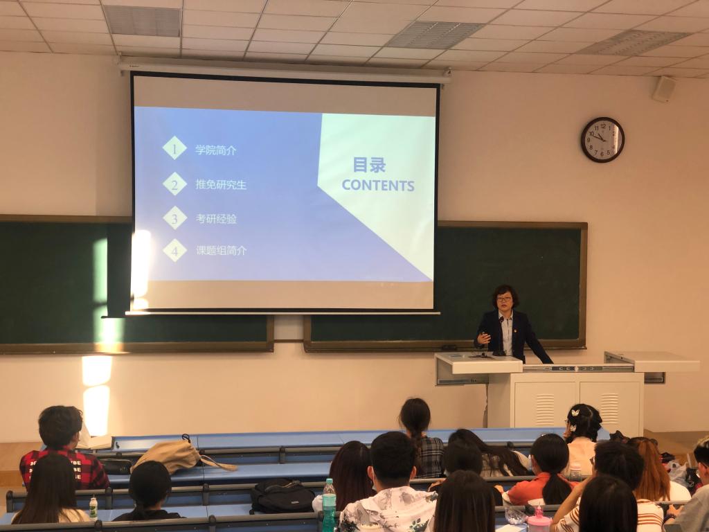 刘丹教授从学院情况介绍、推免研究生政策、考研经验分享、课题组简介四方面入手,结合自身在沈药本科、硕博连读、工作以来的教学科研经历,针对药物化学专业学生如何复习备考、如何培养自身的科研素养等多方面入手,为与会同学做详细的讲解。