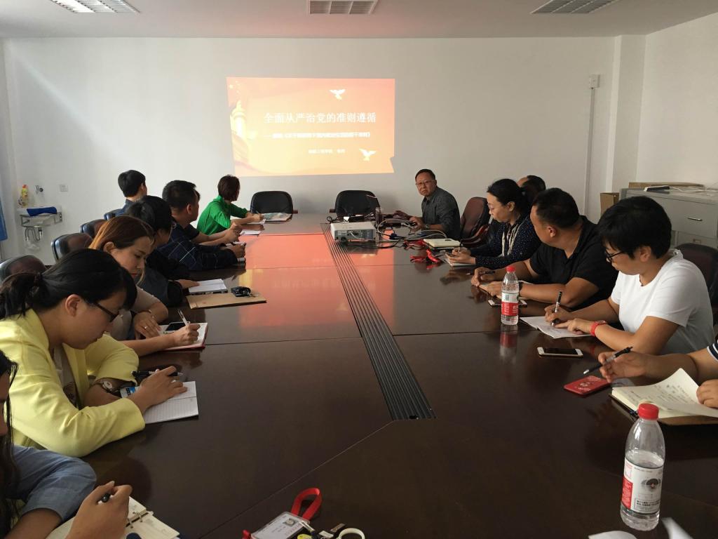 首先,张伟书记以PPT的形式做中心发言,张伟书记以“全面从严治党的准则遵循”为题,从“党内政治生活的实践与探索是《准则》的源泉、严肃党内政治生活是解决党内存在问题的重要途径、党内政治生活必须以党章为根本遵循、坚定理想信念是加强和规范党内政治生活的首要任务、坚持党的基本路线是加强和规范党内政治生活的根本保证、加强和规范党内政治生活的重要目的是坚决维护党中央权威、严明党的政治纪律是加强和规范党内政治生活的重要内容、保持党同人民群众的血肉联系是加强和规范党内政治生活的根本要求、坚持民主集中制原则是加强和规范党内政治生活的制度保障等九方面详细解读了《关于新形势下党内政治生活的若干准则》。接下来,张伟书记结合jdb电子党建工作的实际情况,逐条解读了辽委办发〔2017〕15号-《关于严格党的组织生活制度的意见》的文件精神。